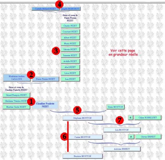 2 - Pierre Firmin NIZET est le conjoint de Madeleine Andrée CAILLOUX, ensemble ils ont eu 4 enfants : Gérard François , Ghislaine Thérèse , Claudine Paulette et Martine Gisèle NIZET | |